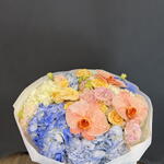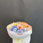 Гортензия - 7 шт. Лизиантус - 7 шт. Орхидеи - 3 шт. кустовые розы - 7 шт.