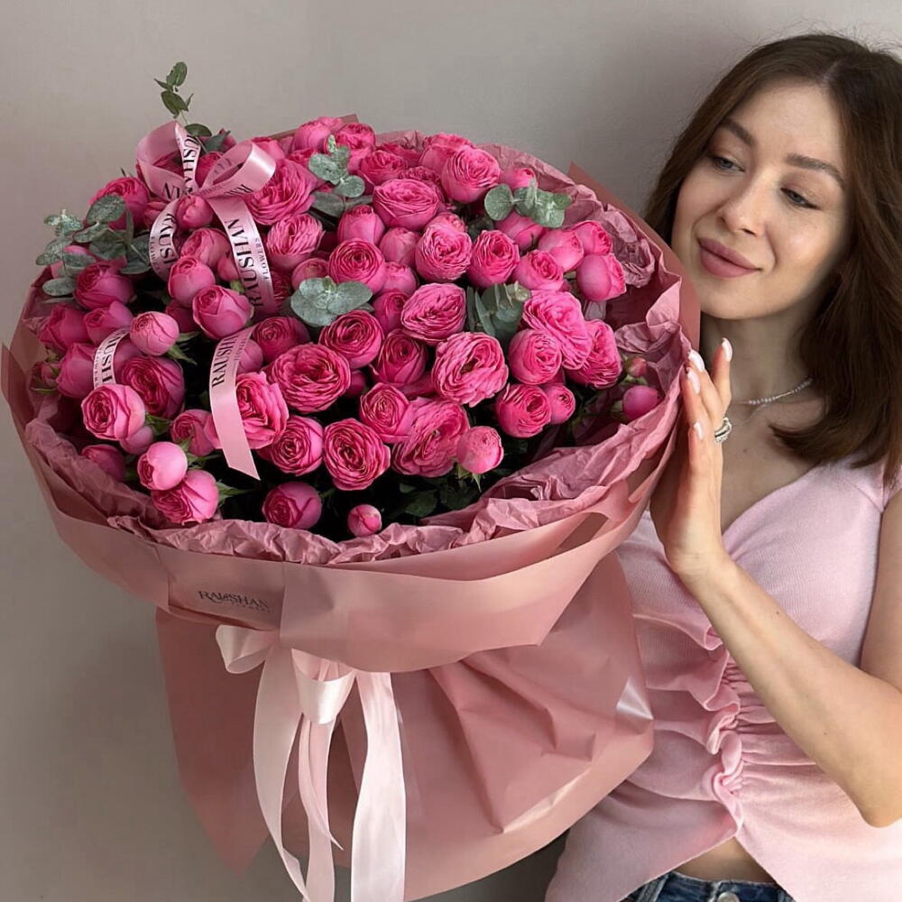 Эвкалипт - 5 шт. Кустовая роза пионовидная - 21 шт.