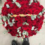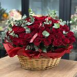 Эвкалипт - 15 шт. утеплитель - 2 шт. витамины для стойкости цветов - 1 шт. корзинка - 1 шт. открытка бесплатная на выбор - 1 шт. премиум роза колумбия - 101 шт. лента атласная бронированная - 2 шт.