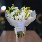 Калла - 2 шт. Маттиола - 3 шт. Диантус - 5 шт. Лилия Белая - 2 шт. Упаковка дизайнерская - 1 шт. Орниготалум - 3 шт. Орлайя - 2 шт.