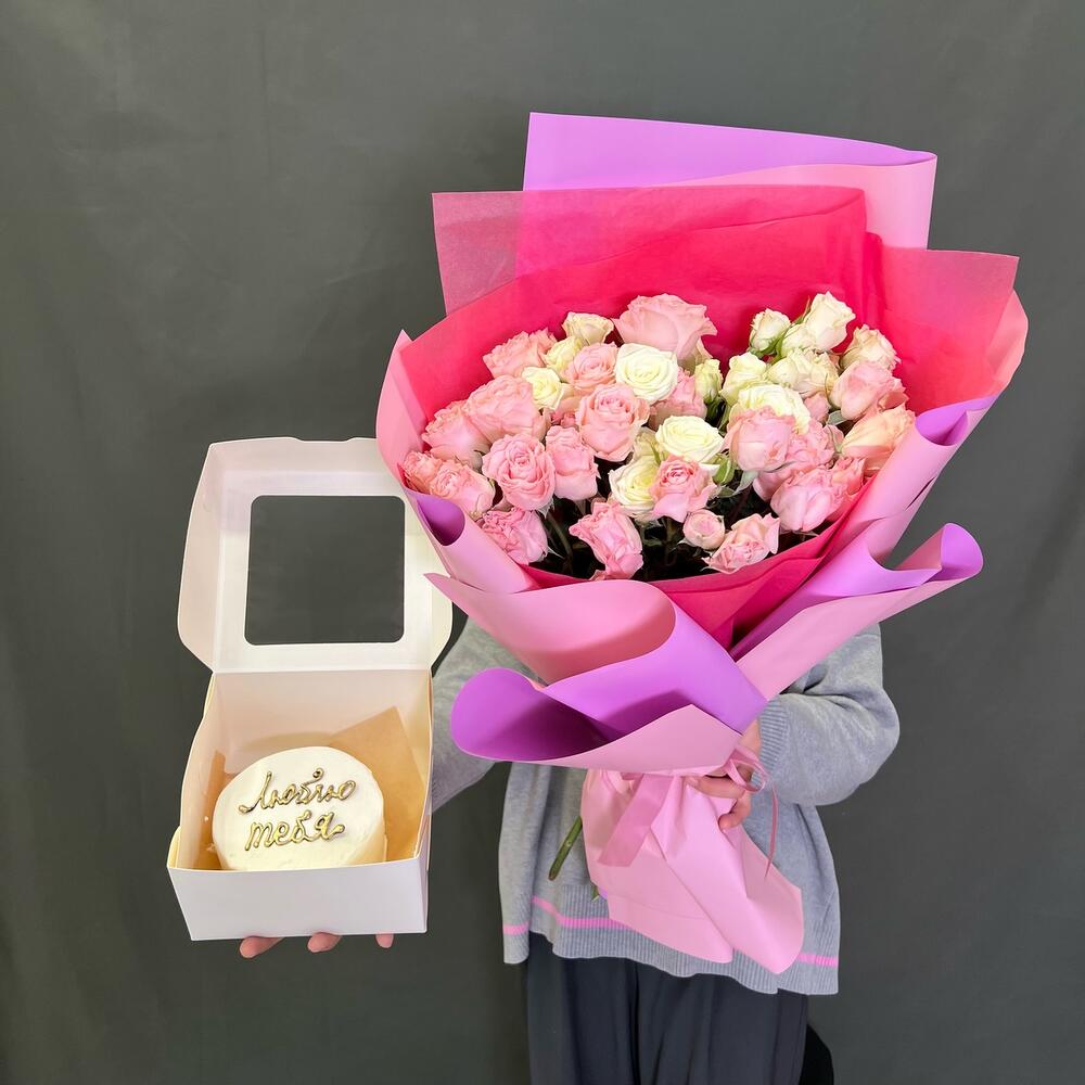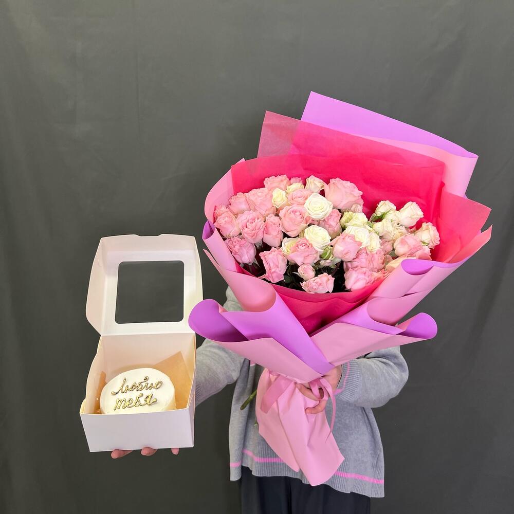 Кустовая роза - 10 шт. бенто торт - 1 шт.