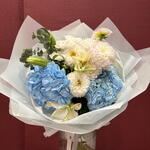 Пышная нежный авторский букет в композиции голубых гортензий