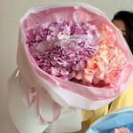 Этот изысканный монобукет станет настоящим символом вашей любви и восхищения. Он состоит из пяти свежесрезанных французских роз, которые славятся своим утонченным ароматом и пышными бутоны, украшенных нежными лепестками бархатного оттенка. В сердце букета расположена королевская гортензия — величественный цветок с крупными сочными лепестками, который добавляет композиции объема и роскоши. Этот букет будет идеальным подарком для самых ярких и незабываемых моментов жизни.