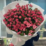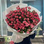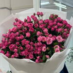 Очаровательный букет из насыщенно-розовых кустовых роз — символ любви, тепла и искренних чувств. Пышные соцветия с нежными лепестками создают эффект густого, живого облака, излучающего радость и гармонию. Упаковка в белую матовую бумагу подчёркивает яркость роз и придаёт композиции утончённый, современный стиль. 🌸 Идеально подойдёт для: — романтического подарка — поздравления с днём рождения или годовщиной — выражения благодарности, нежности или восхищения ✨ Особенности: • свежие кустовые розы премиум-класса • элегантное сочетание белой упаковки и ярких бутонов • гармоничная форма и безупречная подача
