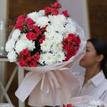 Хризантема кустовая - 4 шт. Кустовая роза - 5 шт.