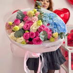 Эвкалипт - 3 шт. Эустома - 6 шт. Гортензия Премиум Микс - 2 шт. жизель кустовая роза - 4 шт.