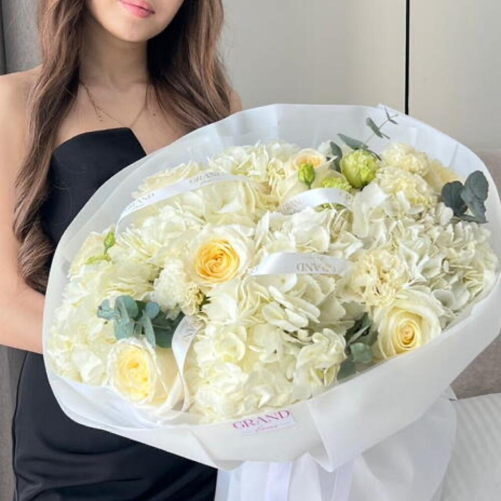 Эвкалипт Цинерея - 4 шт. эустома белая - 4 шт. белая гортензия - 7 шт. кендилайт роза пионовидная - 10 шт.