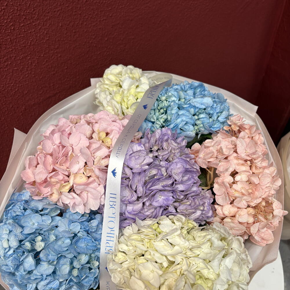 Пышный моно-букет гортензий