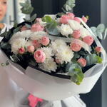 Хризантема кустовая - 5 шт. Эвкалипт - 5 шт. Кустовая роза - 5 шт.