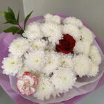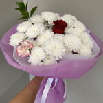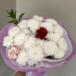 Рускус - 1 шт. Диантус - 1 шт. Роза 60 см - 1 шт. хризантемки - 5 шт.