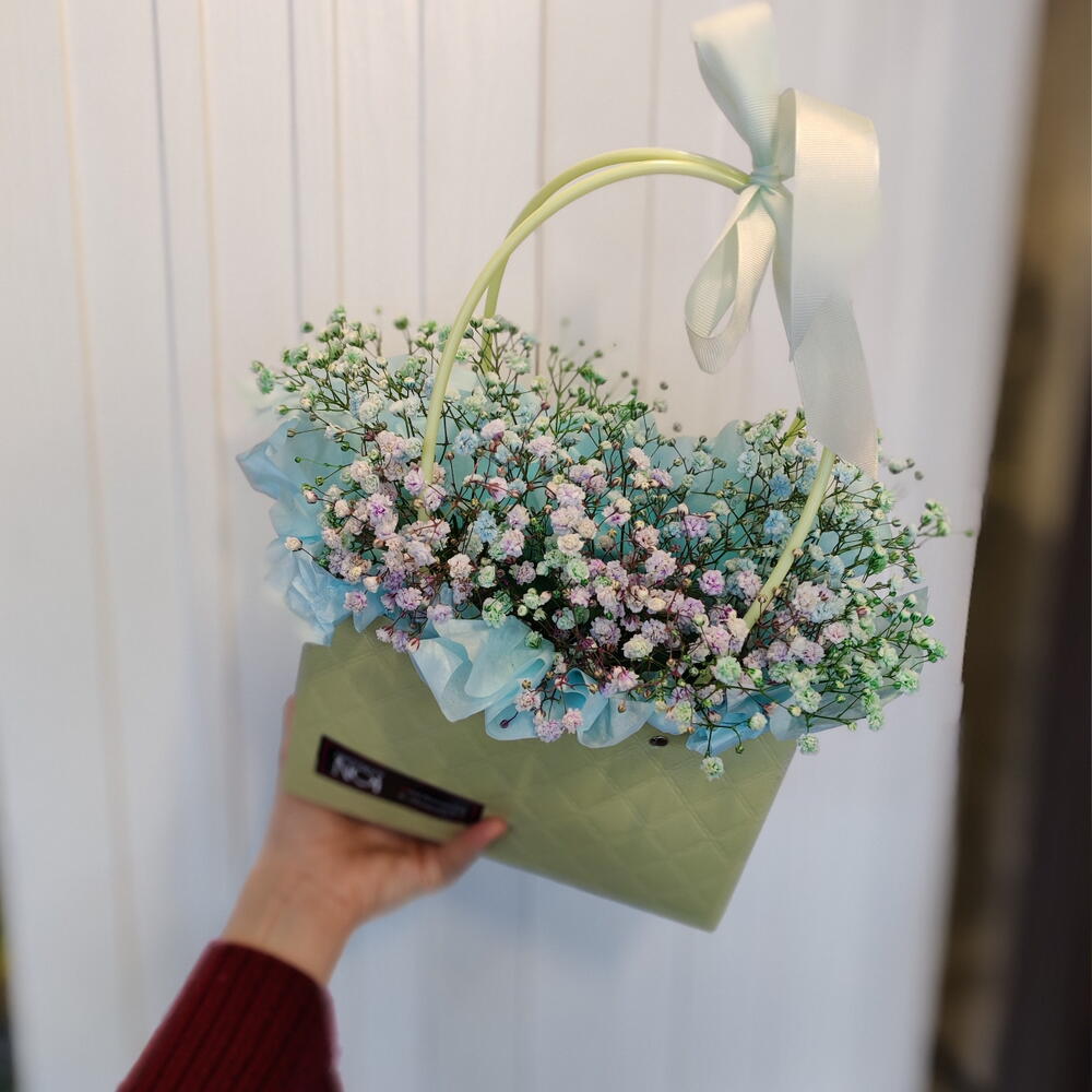 Гипсофила - 4 шт. Оазис - 1 шт. Сумочка - 1 шт.