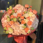 Роскошный букет в нежно-персиковой гамме, созданный для самых тёплых эмоций. Композиция собрана из пышных гортензий, воздушных эустом и садовых роз с мягким кремово-коралловым оттенком. Цветы гармонично сочетаются между собой, создавая ощущение лёгкости, утончённости и особого очарования Такой букет станет идеальным подарком для признаний, поздравлений, важных дат или просто чтобы подарить ощущение праздника Смотрится дорого, объёмно и очень естественно Эффект: нежность, элегантность, роскошь