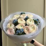 Открытка - 1 шт. Твидия - 5 шт. Инструкция по уходу - 1 шт. ранункулюсы - 11 шт. витамины для цветов - 1 шт. переносная ваза - 1 шт.