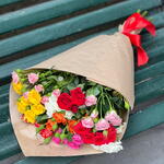 Упаковка крафт - 1 шт. розы кустовые разноцветные - 9 шт.