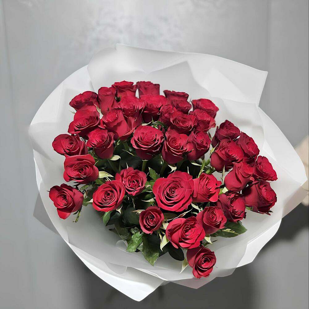 Представляем вашему вниманию великолепный монобукет из 35 бутоночных роз. Окутанный в особое оформление, этот букет станет источником радости и сплошного восхищения. Элегантный во всех отношениях, он является исключительным подарком для любого случая, щедро даря буйство красок и стиль.