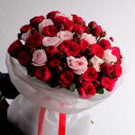 Red Piano роза - 45 шт. pink o'hara роза - 11 шт.