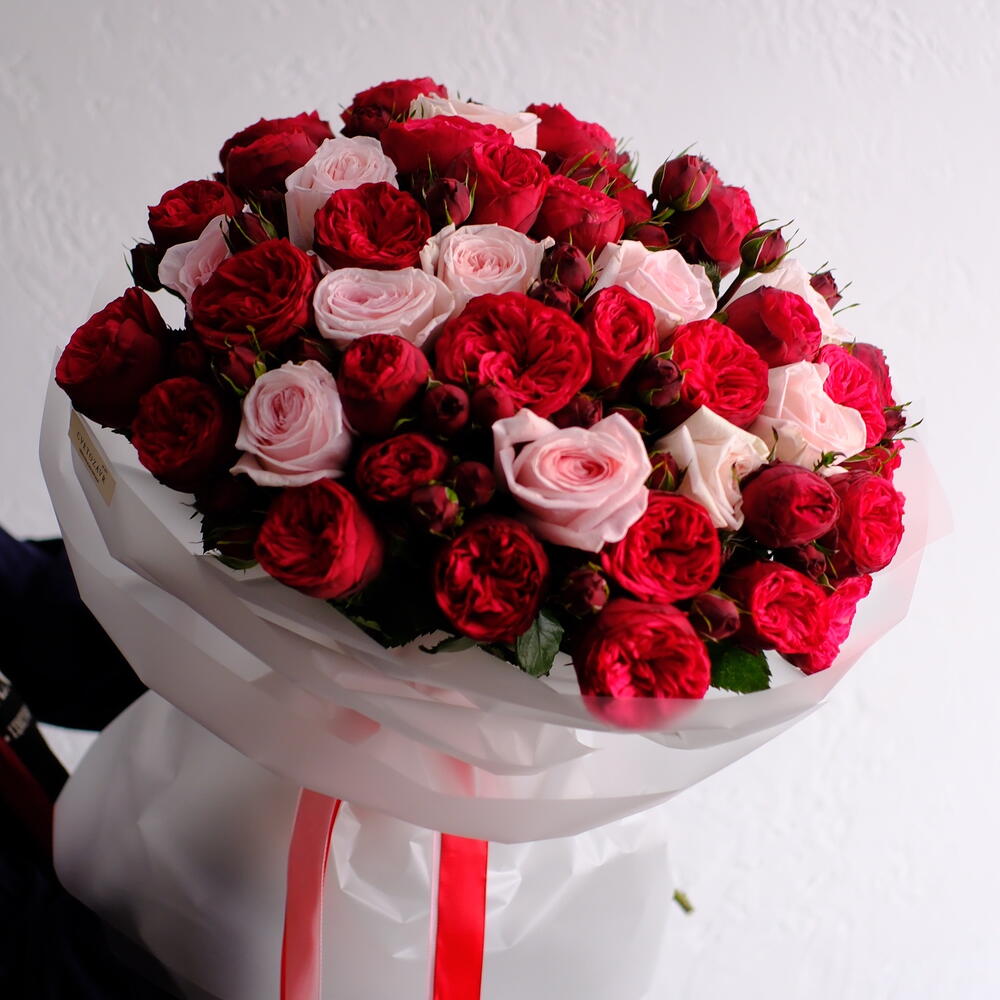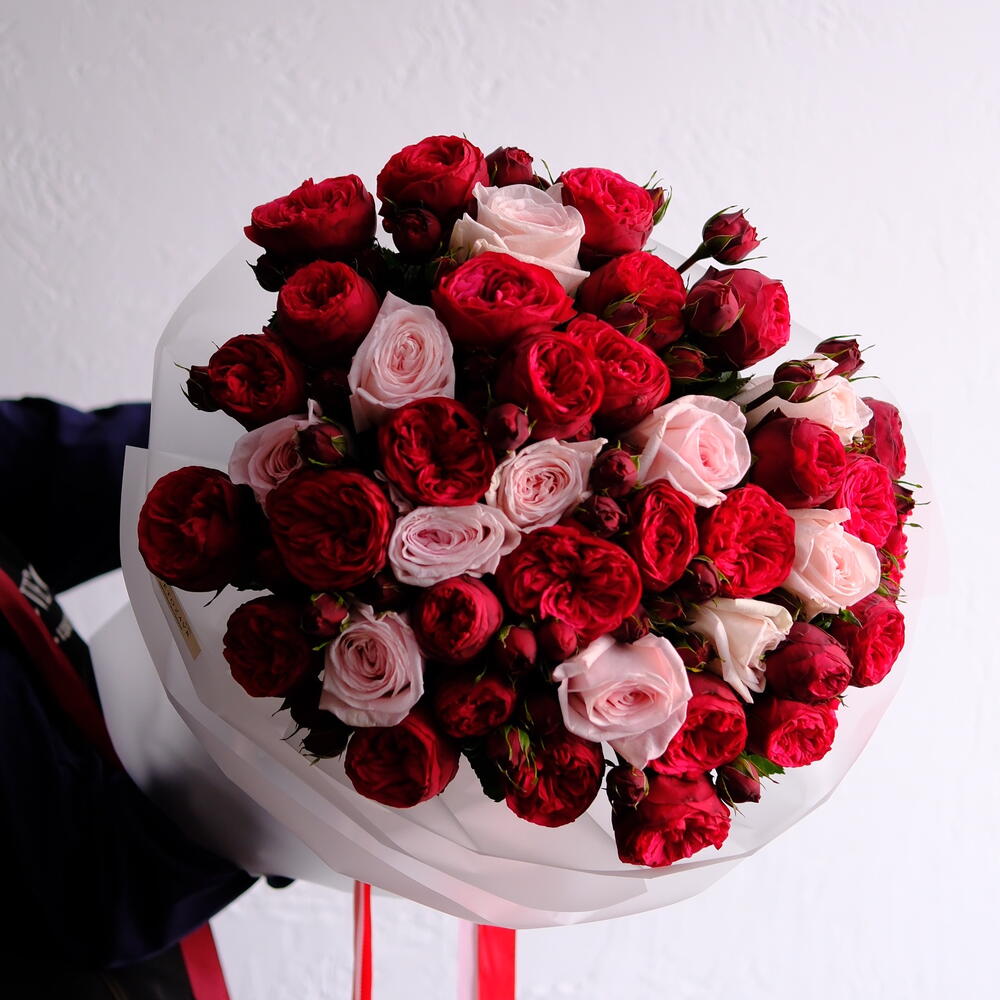 Red Piano роза - 45 шт. pink o'hara роза - 11 шт.