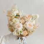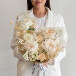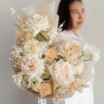 Рускус - 2 шт. Эустома - 2 шт. Диантус - 3 шт. Лагурус - 2 шт. роза white ohara - 3 шт. роза плайя бланка - 3 шт.