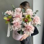 Орхидея Цимбидиум - 2 шт. Эвкалипт - 1 шт. Роза Голландская - 7 шт.