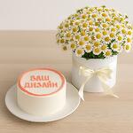Трогательный дуэт для особых случаев — нежный букет свежих ромашек в элегантной коробке с лентой и бенто-торт с надписью на заказ. Подходит для поздравлений, сюрпризов и выражения чувств. Дизайн торта вы выбираете сами — мы нанесём надпись или лёгкий рисунок. Красиво упаковано, удобно дарить! • Свежие ромашки (хамомилла) • Упаковка: шляпная коробка с атласной лентой • При необходимости: добавление декоративной зелени