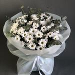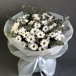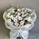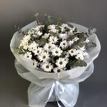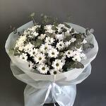 Эвкалипт - 3 шт. Кустовая хризантема - 9 шт. Лента атласная - 1 шт. аквабумага - 6 шт.