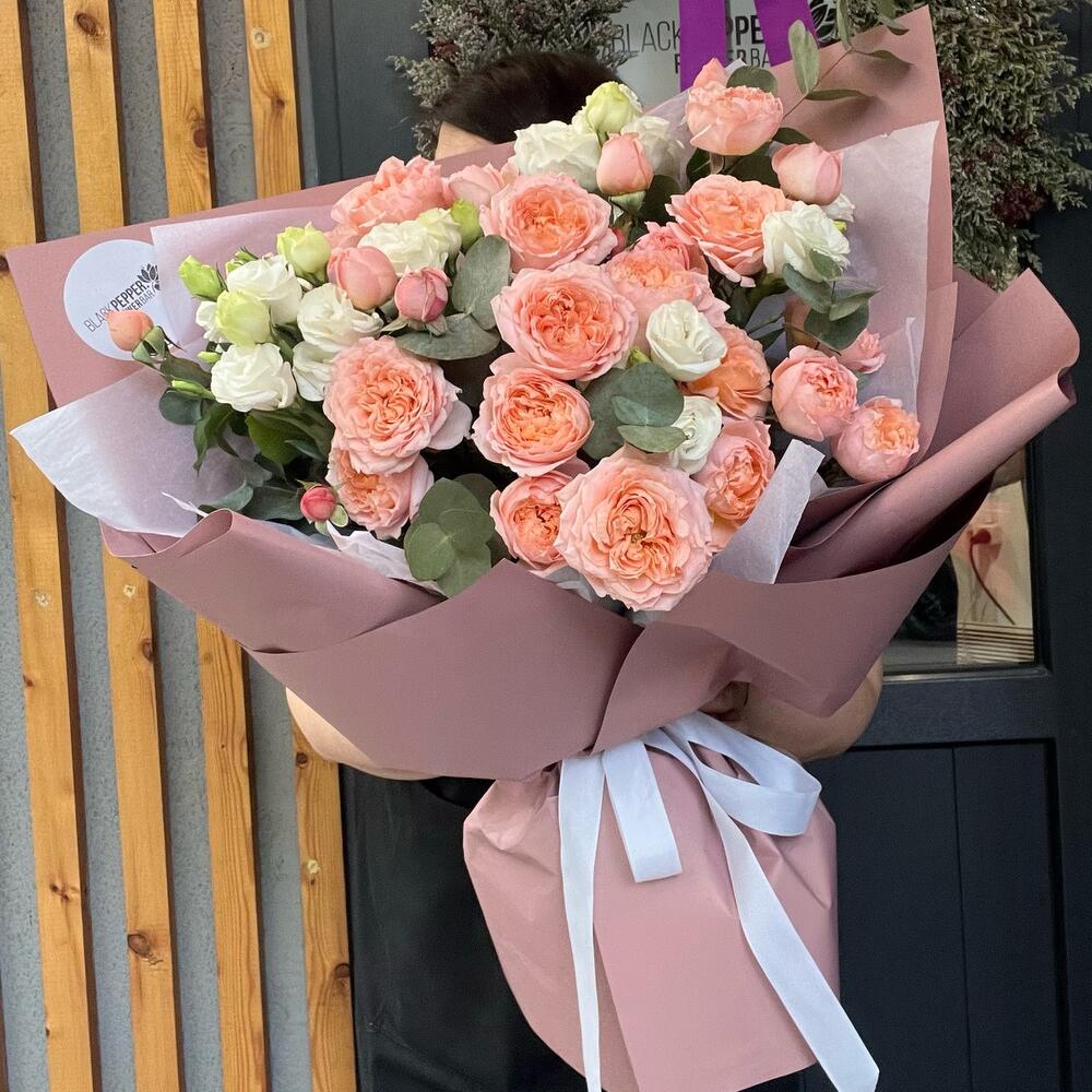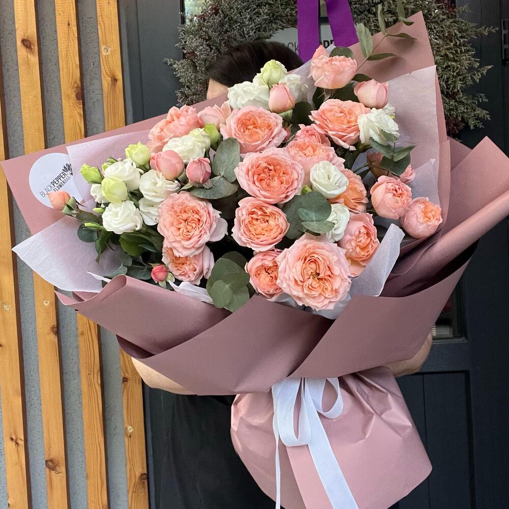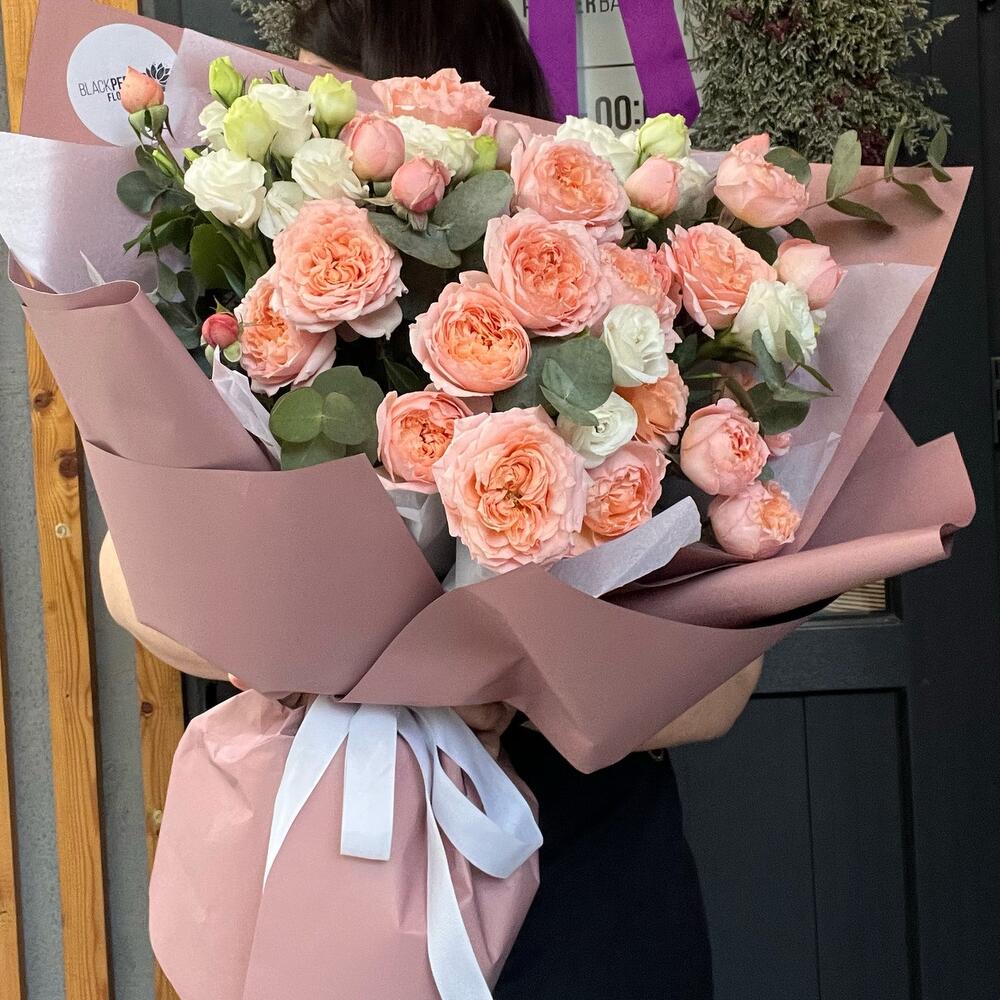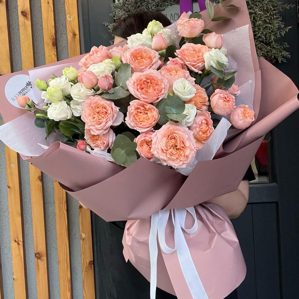 Эустома - 4 шт. джульетта кустовая роза пионовидная - 7 шт.