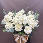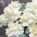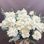 Лента - 1 шт. Французская роза - 15 шт. Кашпо плетеное - 1 шт. Эвкалипт Микс - 7 шт. Оазис флористический - 2 шт. тепея - 5 шт.