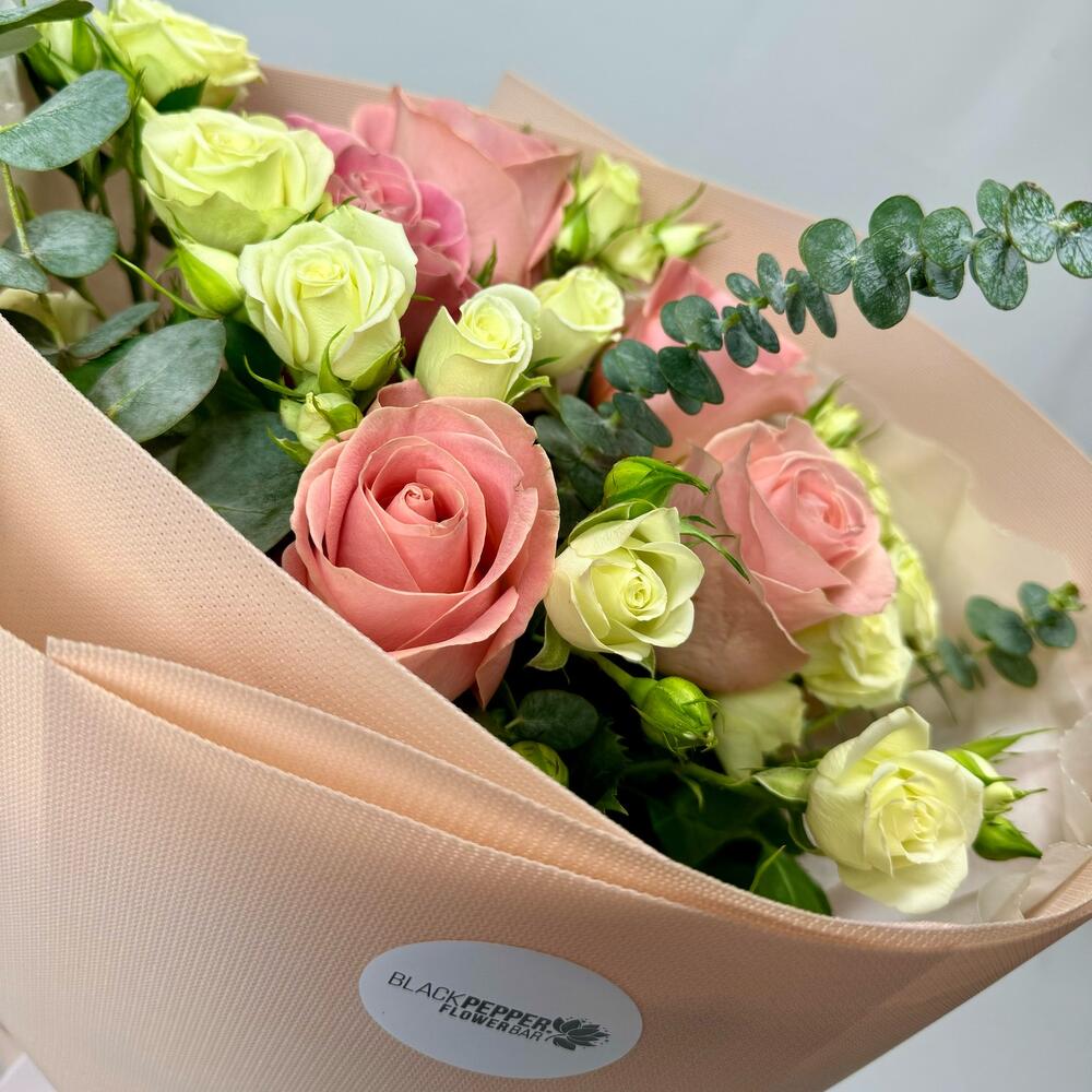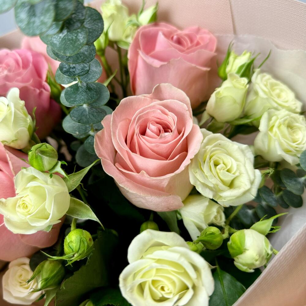 Эвкалипт - 2 шт. Роза - 5 шт. Кустовая роза - 4 шт.
