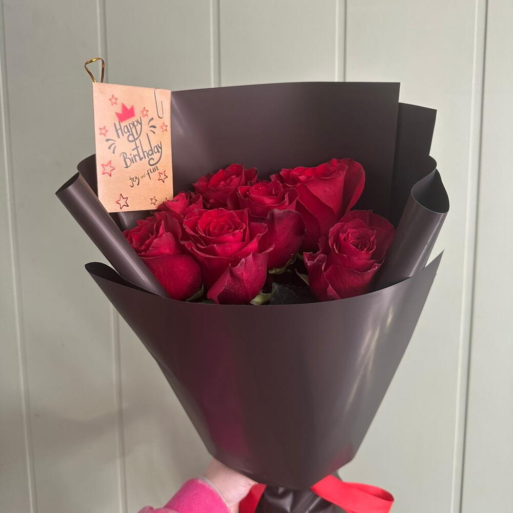 С букетом все хорошо, но зачем-то прикрепили открытку «С днем рождения», хотя никакого дня рождения у получателя в день вручения не было. Лучше тогда ничего не прикреплять, чтобы избежать неловких ситуаций.
