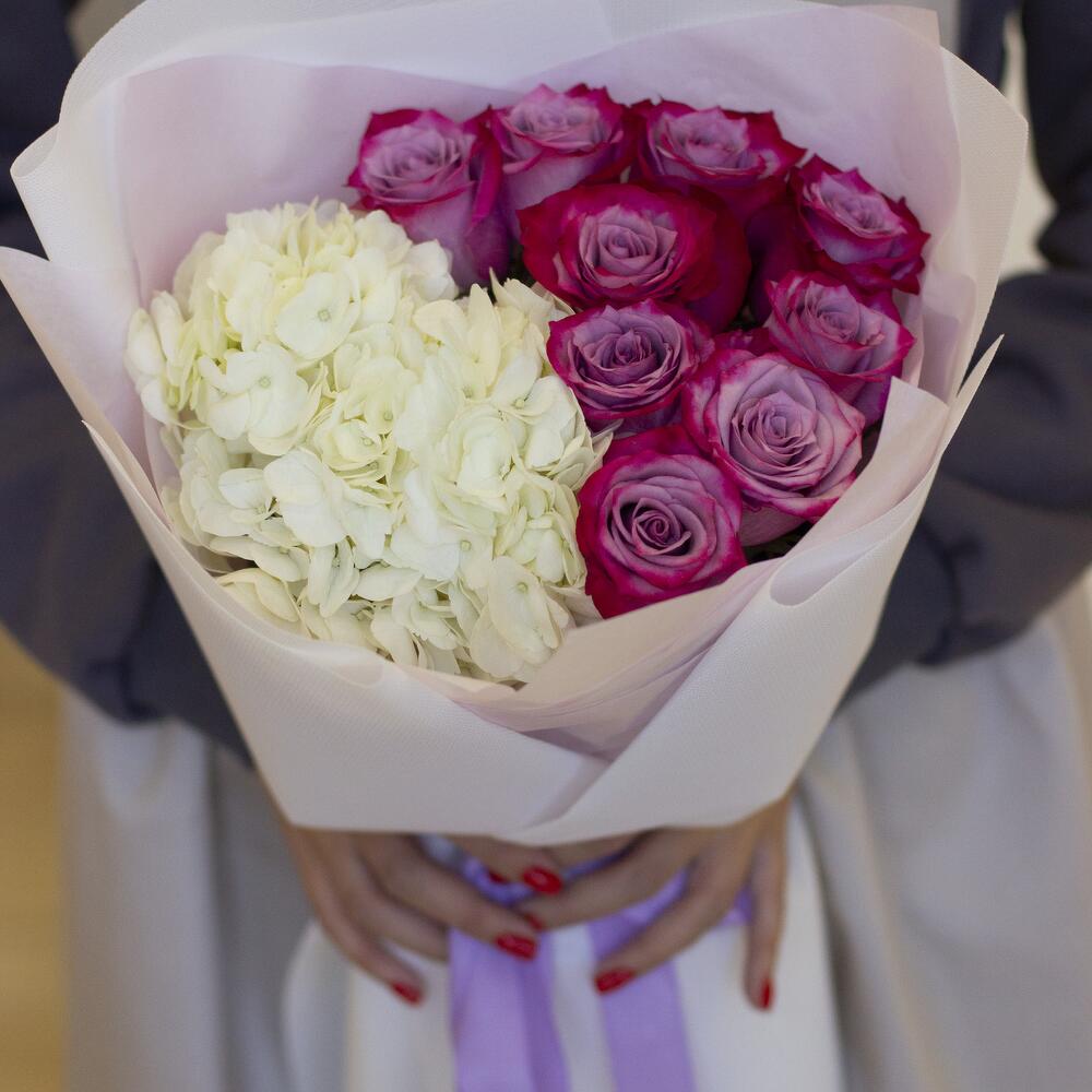 Гортензия - 1 шт. Роза - 9 шт.