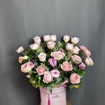 Лизиантус - 5 шт. Коробка - 1 шт. Пионовидная роза - 17 шт.