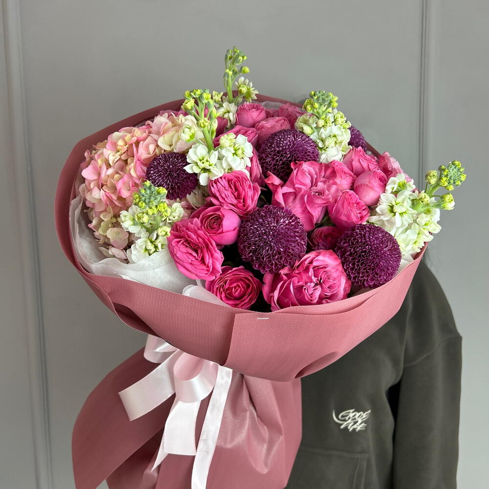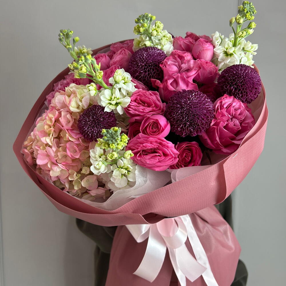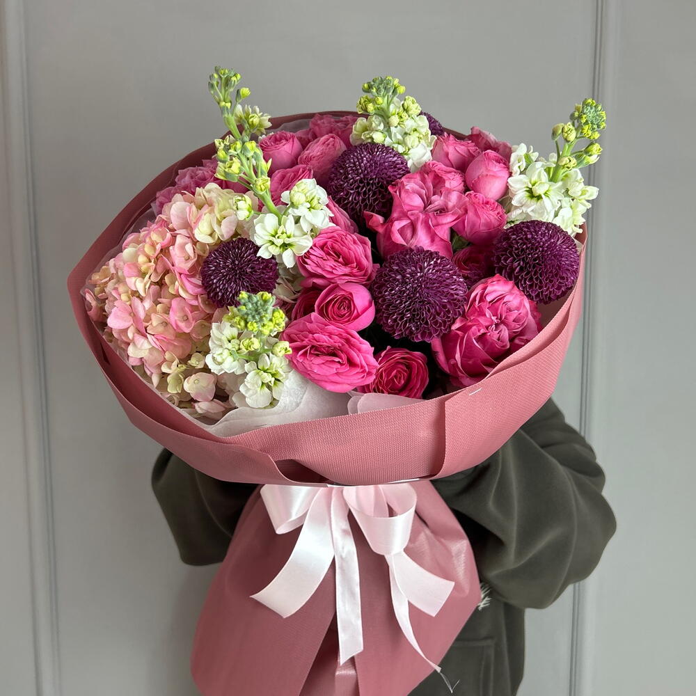 Маттиола - 5 шт. Кустовая роза - 3 шт. момоко - 5 шт. Гортензия Премиум Микс - 1 шт.