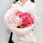 Гортензия - 1 шт. Raffaello - 1 шт. пионовидные розы - 7 шт.