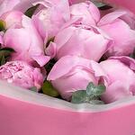 Лента - 1 шт. Пион - 13 шт. Эвкалипт - 3 шт. Тишью - 3 шт. Фоамиран (упаковка) - 3 шт.