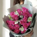 Эвкалипт - 2 шт. Упаковка дизайнерская - 8 шт. Роза Эквадор 60 см - 21 шт.