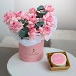 Розовые розы в коробке + бенто торт в подарок