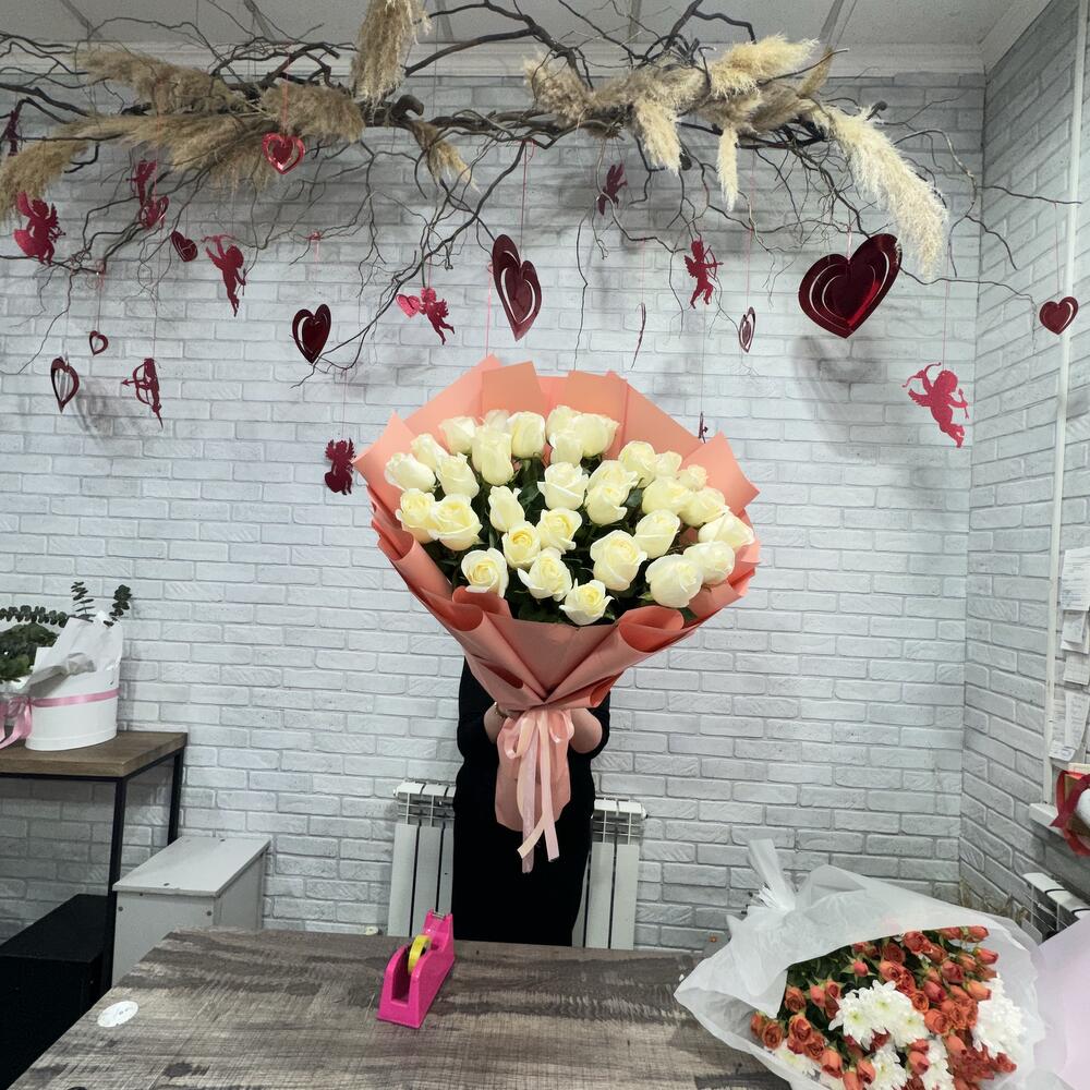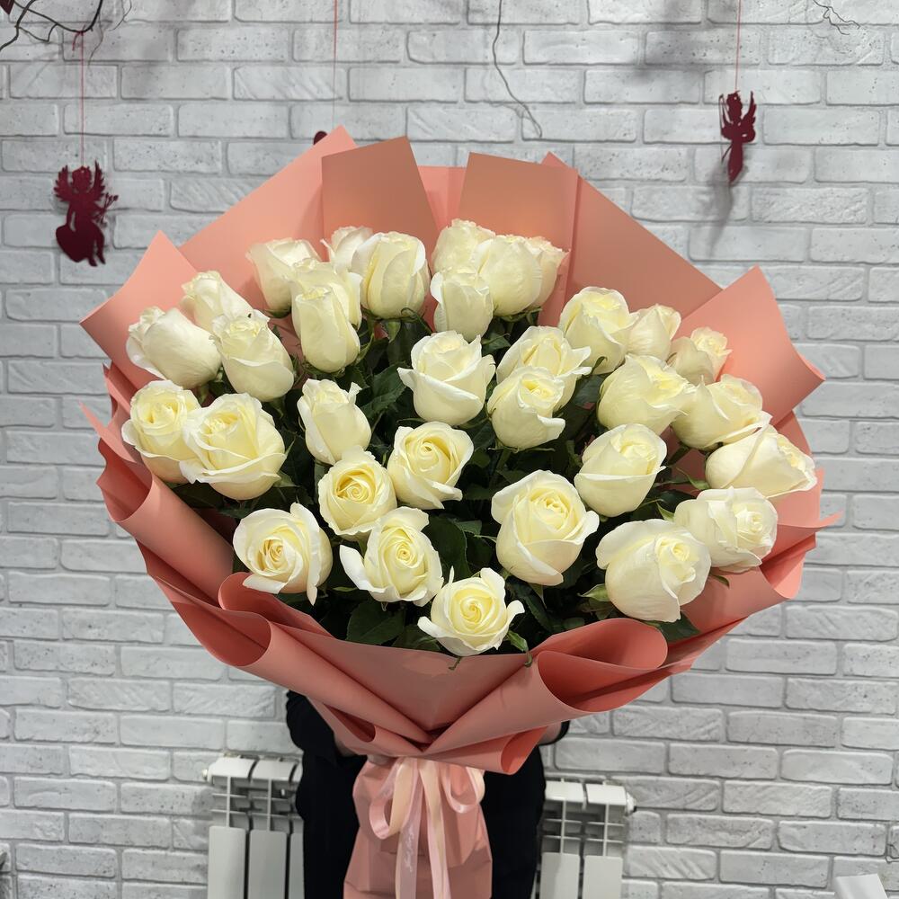 Лента - 1 шт. Роза - 35 шт. Бумага - 10 шт.