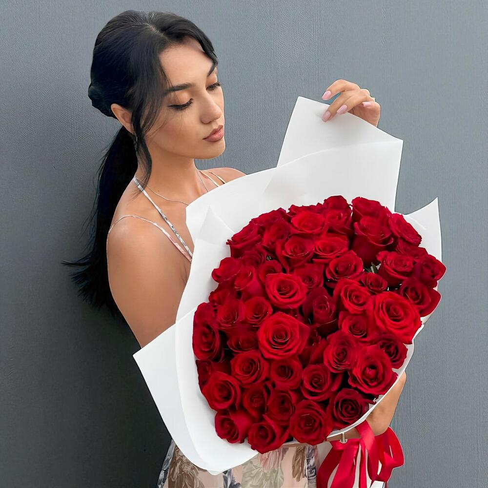 Создайте праздничное настроение с помощью этого изысканного монобукета! Более пятидесяти бутонов роз, каждый из которых воплощает утонченность и грацию, зарядят ваши дни атмосферой романтики и развернут перед вами мир, полный любви и свежести. Удивите своих близких этим великолепным подарком - дайте им возможность окунуться в мир красоты и изысканности.