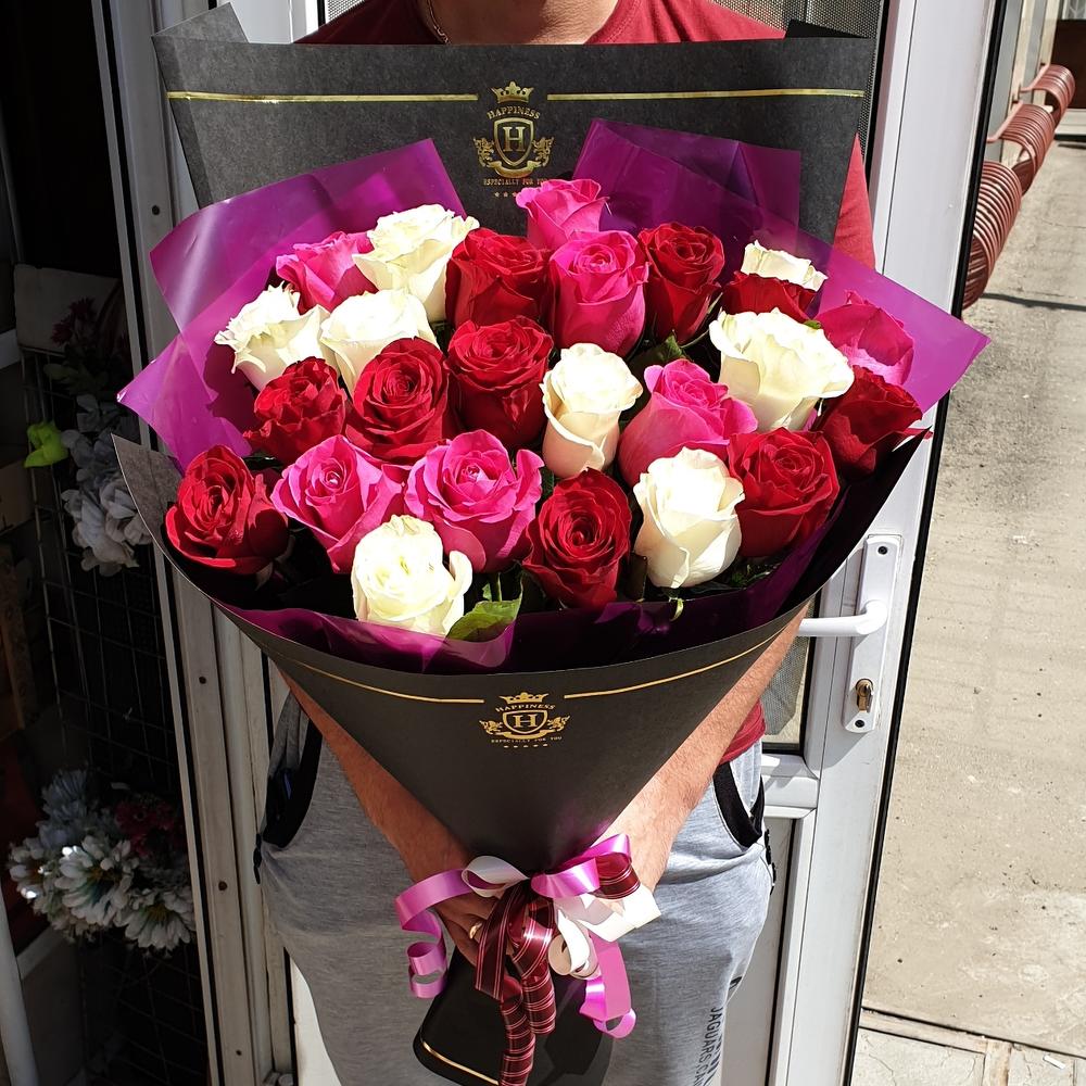 Упаковка дизайнерская - 2 шт. роза эквадор 60 см микс - 25 шт.