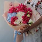 Гортензия - 1 шт. Хризантема кустовая - 1 шт. Эустома - 1 шт. розы - 5 шт.