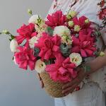 Эвкалипт - 1 шт. Роза - 7 шт. Эустома - 4 шт. Львиный зев - 2 шт.