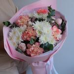 Хризантема кустовая - 3 шт. Эвкалипт - 1 шт. Спрей роза - 3 шт. розы французские - 5 шт.