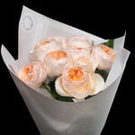Букет из роз сорта Juliette — это воплощение нежности и утончённой элегантности. Их кремово-персиковые лепестки, словно вырезанные из шелка, создают атмосферу тепла, романтики и безмятежности. Оформлен в фирменную упаковку Malli Botanicals с возможностью дополнить открыткой. На фото букет в размере S, 9шт.