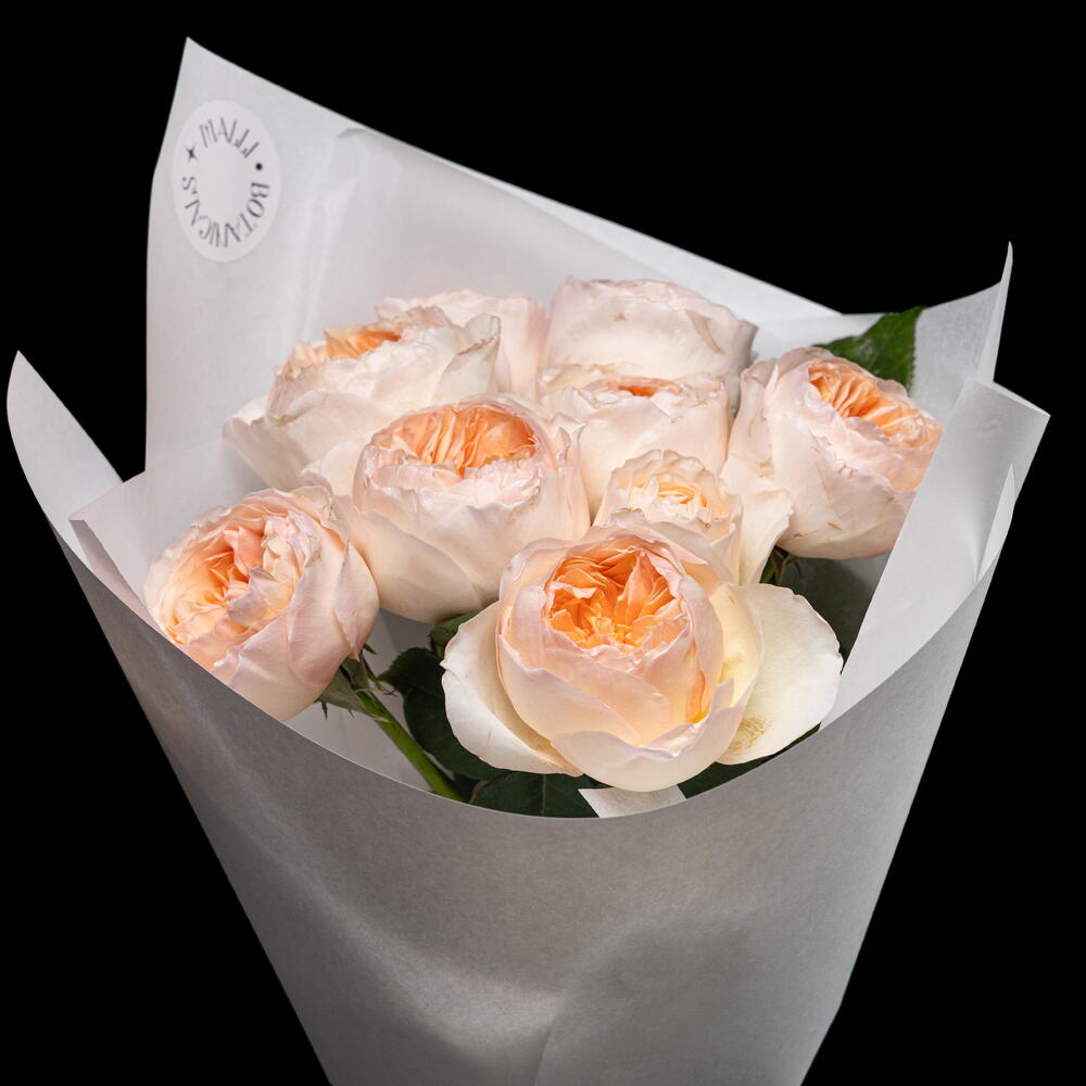 Букет из роз сорта Juliette — это воплощение нежности и утончённой элегантности. Их кремово-персиковые лепестки, словно вырезанные из шелка, создают атмосферу тепла, романтики и безмятежности. Оформлен в фирменную упаковку Malli Botanicals с возможностью дополнить открыткой. На фото букет в размере S, 9шт.