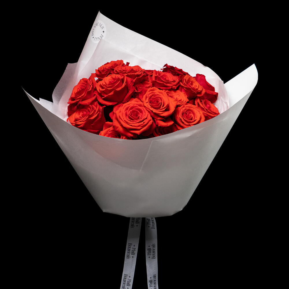 Красные розы сорта Nina — это яркие и элегантные цветы, которые привлекают внимание своей красотой. Они имеют насыщенный красный цвет, который символизирует любовь, страсть и восхищение. Оформлен в фирменную упаковку Malli Botanicals с возможностью дополнить открыткой. На фото букет в размере S, 25шт.