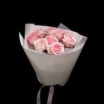 Букеты розовых ароматных садовых роз, упакованный в белую бумагу и белую коробку, с тематической открыткой по запросу. На фото букет в размере S, 9шт.