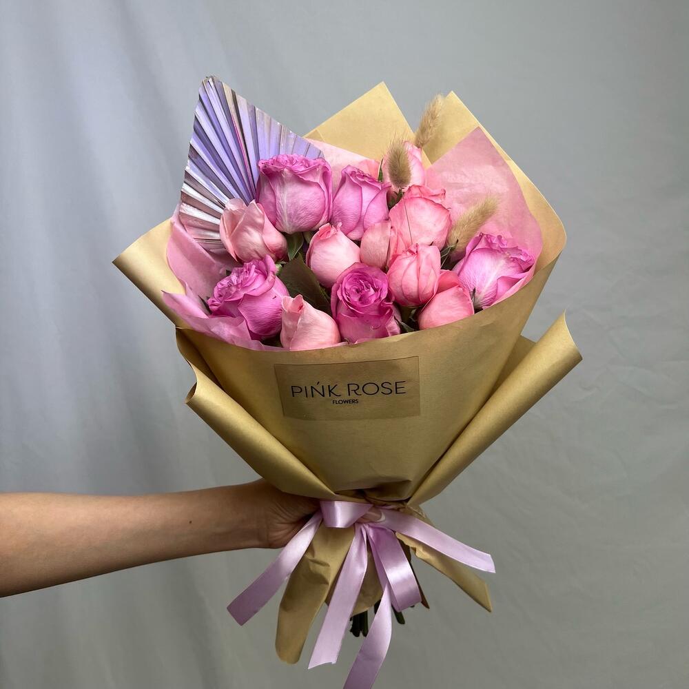 Роза - 11 шт. Сухоцветы - 3 шт. Декор - 1 шт.