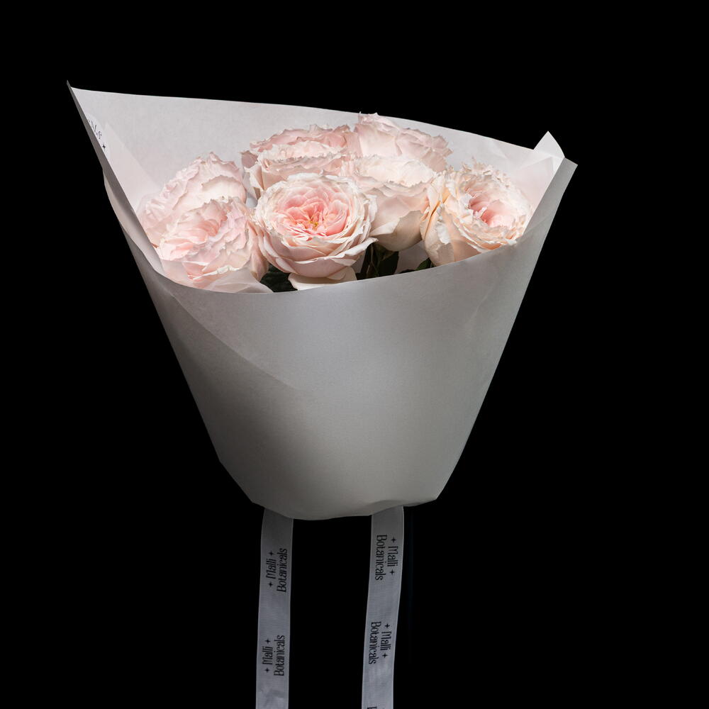 Букет из роз сорта Tsumugi — это нежное облако пастельных оттенков, словно сотканное из утреннего тумана. Их мягкие розово-кремовые лепестки, полные объема и текстуры, создают ощущение тепла и уюта.Каждая роза будто дышит спокойствием и элегантностью. Оформлен в фирменную упаковку Malli Botanicals с возможностью дополнить открыткой. На фото букет в размере S, 9шт.
