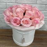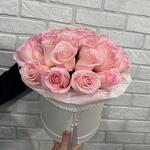 Роза - 25 шт. Коробка шляпная - 1 шт. Калька упаковка - 2 шт.