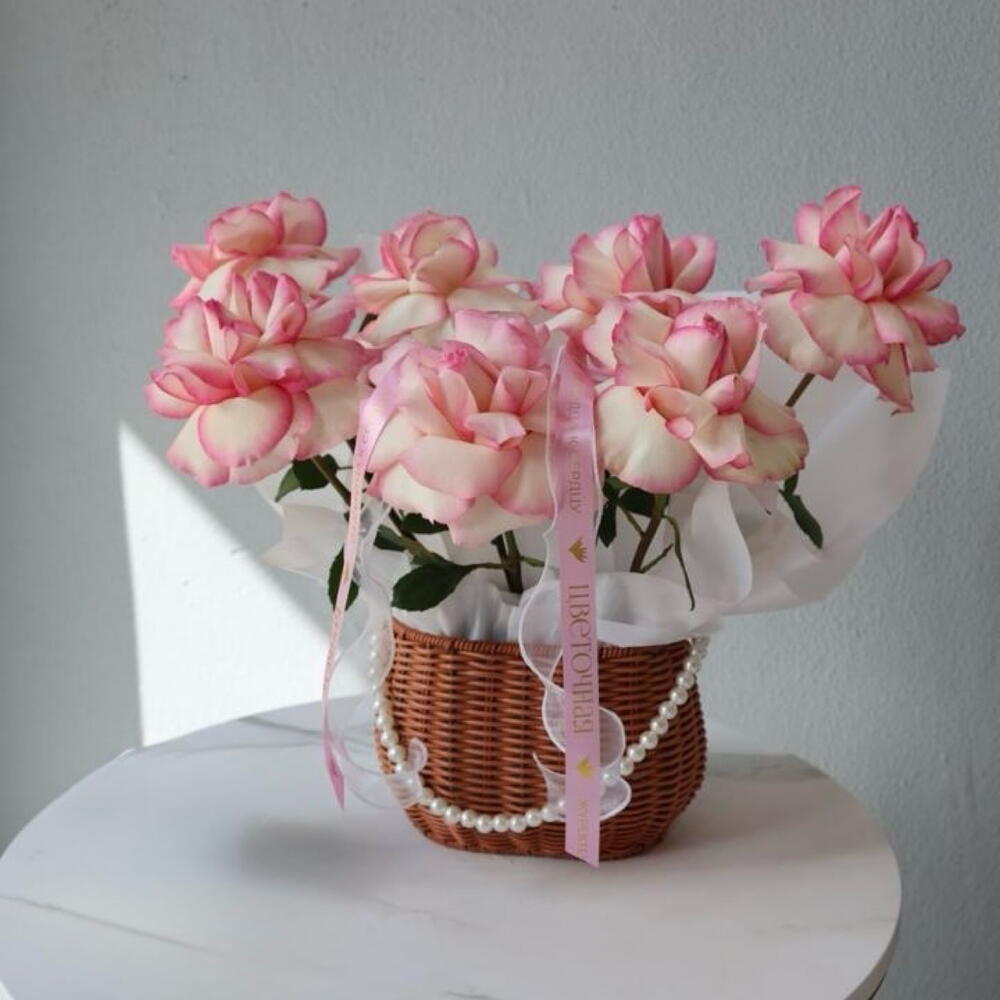 Эта изысканная корзина, наполненная семью благоухающими французскими розами, станет идеальным подарком для проявления ваших чувств. Они сумеют выразить вашу нежность, уважение и привязанность, без излишних слов. Благородство и аристократизм роз, в сочетании с элегантностью корзины, делают этот подарок по-настоящему незабываемым.